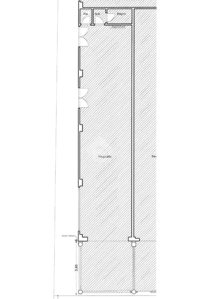 All'interno ulteriori finestrature per dare respiro a tutte le superfici del locale, sul retro vano tecnico e servizi completi di antibagno.