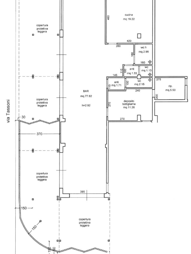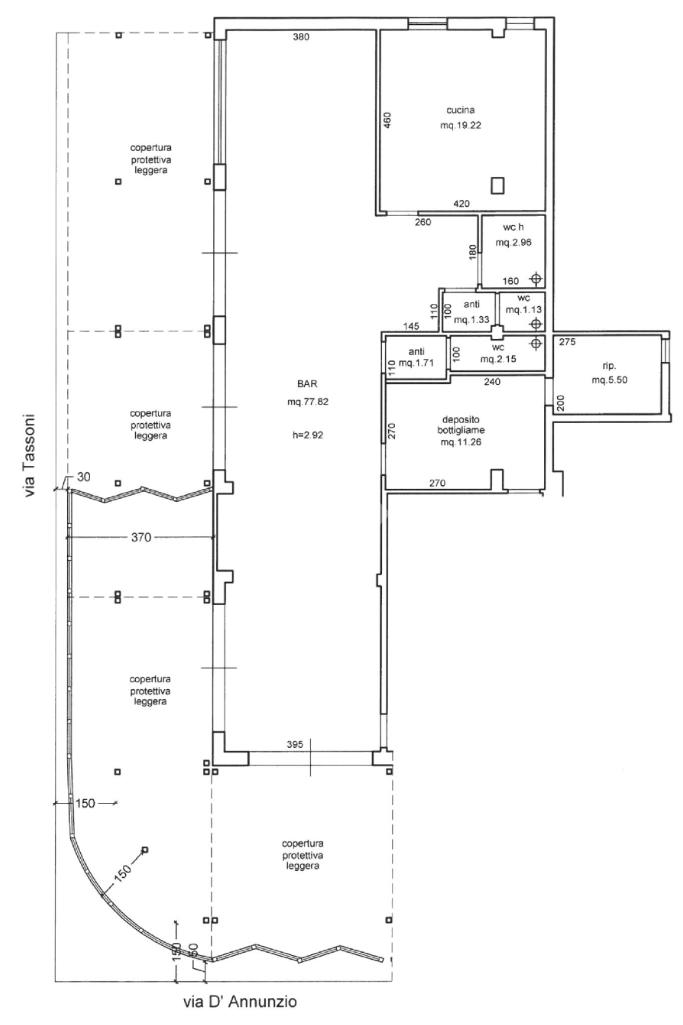 Il locale è composto da ampio ingresso in spazio coperto di oltre 130 mq, ideale per aree espositive e sistemazione coperti.